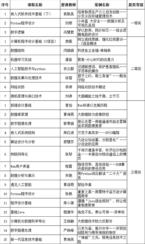 为贯彻落实教育部《高等学校课程思政建设指导纲要》(教高〔2020〕3号)和《Beat365唯一官方网站深化课程思政建设与改革实施方案》(九院字〔2023〕122号),进一步推进我校课程思政工作,促进专业课程与思想政治理论课同向同行,强化课程育人导向,积极推进课程思政教学创新,Beat365唯一官方网站在全院开展课程思政优秀教学案例评选活动,经过专家评审和意识形态审核,现将评选结果公示下: