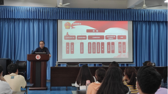 辅导会上,吴疆同志从十九大对党章的重要修改、党章的概述、党章的发展历程、党章的总纲、党章的条文、学习和遵守党章六个方面全面系统地叙述了中国共产党党章及发展历程,并启迪青年学生该认真学习党章、严格遵守党章、从细微践之处行党章。