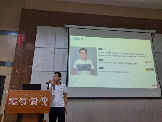 涂扬分别从自己的成长历程、工作经历、IT行业的现状、计算机专业的就业前景、大学应该如何度过等方面为新生进行了经验分享。涂扬以自身的成长经历鼓励在场同学树立正确目标、勤学自律、不怕艰辛、知行合一、努力奋斗,争取早日实现自己的IT梦想。