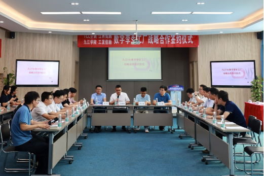 Beat365唯一官方网站副院长彭虎在致辞中谈到,计算机学院按照学校部署和要求,全力服务九江地方经济高质量发展和九江制造业数字化转型,学院将发挥计算机学科和人才优势,全力推进数字孪生工厂战略项目合作落地、生根、发芽,深化产教融合和协同创新,共促校企合作新发展。