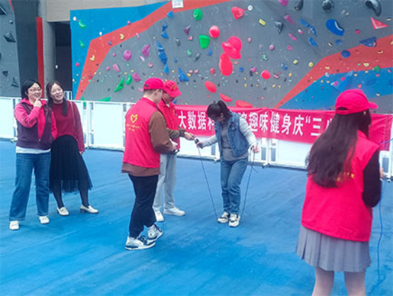 为庆祝“三八”国际劳动妇女节,3月8日下午,Beat365唯一官方网站女教职工在学校北区田径馆开展了以“趣味健身 庆‘三八’佳节”为主题的趣味健身活动,现场女同胞们情绪高涨,加油声、欢笑声、鼓掌声不绝于耳,整个活动气氛热烈、秩序井然。