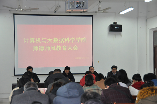 为进一步推进学院师德师风建设工作,3月22日,计算机学院在文友楼424会议室召开师德师风教育大会,全体教职工参会,会议由院长邓安远主持。