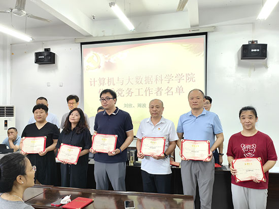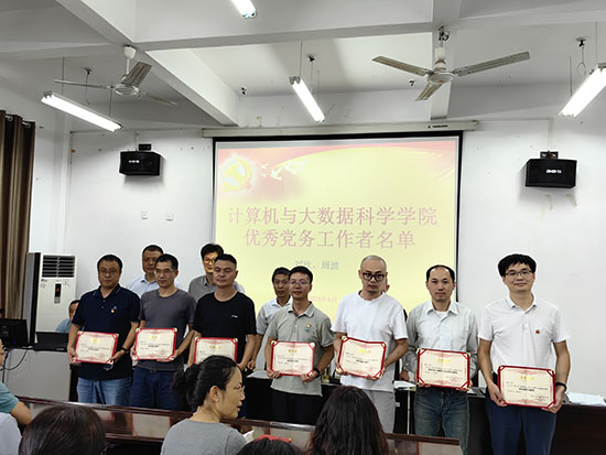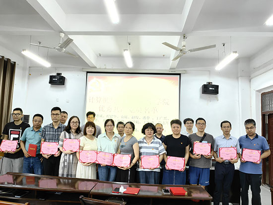 邹国辉书记代表学院向受到表彰的集体和个人表示热烈祝贺,向广大党员和师生员工致以亲切慰问。他指出,作为教师尤其是党员教师,要提高政治站位,在教育教学、管理服务等过程中发挥先锋模范作用,并向全体教职工尤其党员教师提出三点希望:一是要做到有思想号召力,树立崇高的职业理想信念,做好学生人生道路的引路人;二是要做到有学习力,树立终身学习理念,不断汲取新知识,努力提升自身学识魅力;三是要做到有行动力,在自我修养的不断提升中实现道德追求,用自己的道德情操去感染学生、引导学生。