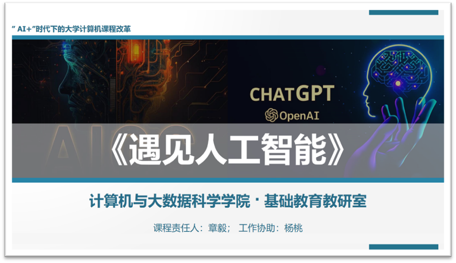《遇见人工智能》课程的教学内容既注重理论知识的传授,又强调实践能力的培养,在备课中,章毅老师特别强调了课程涵盖的三大核心板块:普及人工智能及通用大模型等领域的基础知识与常识、AIGC(生成式人工智能)技术的熟练掌握、熟练掌握国内通用大模型在实际场景中的应用。