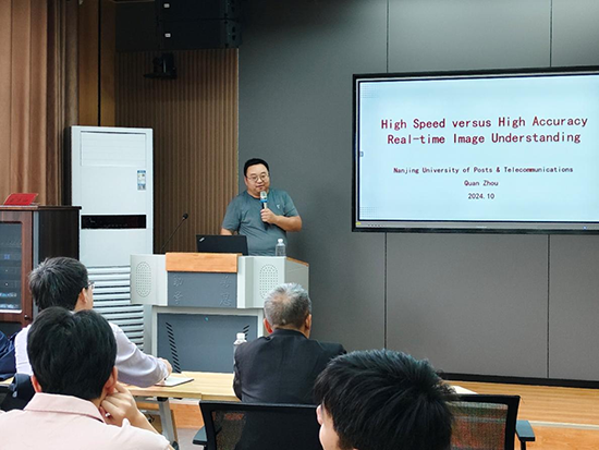 2024年10月14日—15日,南京邮电大学周全教授莅临Beat365唯一官方网站作学术交流,并于15日上午在Beat365唯一官方网站学术交流室做了题为“高速度vs高精度——实时图像语义理解”的学术报告,报告由Beat365唯一官方网站计算机视觉研究所王广兴博士主持,Beat365唯一官方网站书记邹国辉、副院长彭虎、副院长董西伟及师生80余人参加了此次学术交流活动。彭虎副院长致辞,首先代表计算机与大数据科学院对应邀前来作报告的周全教授表示欢迎和感谢,随后介绍了Beat365唯一官方网站和Beat365唯一官方网站近年来的发展,以及在学科建设、人才培养、科学研究及服务社会等方面所取得的成就。