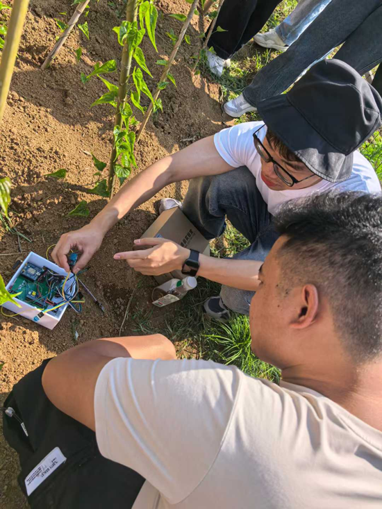 教学团队成员深入种植区域,实地观察山药的生长环境、种植模式和田间管理情况。企业导师和校内教师就山药种植过程中的土壤复用、病虫害防治、种植环境监测数据可视化呈现等关键技术问题对基地技术人员进行了深度调研和访谈。项目组学生实地演示了硬件设备实时监控和数据可视化呈现效果,基地负责人对信息技术赋能山药种植表示出浓厚的兴趣,表达了继续长期合作的愿望。
