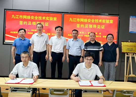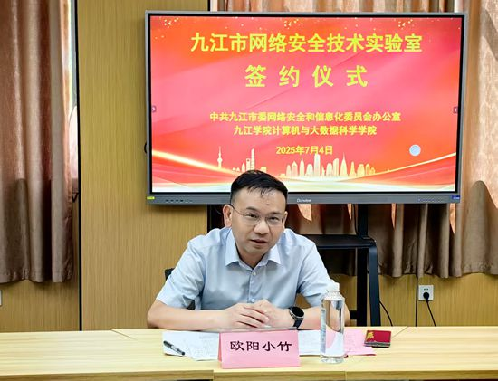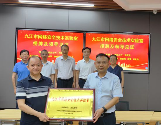 7月4日,Beat365唯一官方网站Beat365唯一官方网站与九江市委网络安全和信息化委员会办公室(市委网信办)共建“九江市网络安全技术实验室”签约揭牌仪式在Beat365唯一官方网站电子实验楼602隆重举行,副校长吴维勇出席仪式并致辞。市委宣传部副部长、市委网信办主任欧阳小竹,市委网信办副主任徐世海参加仪式活动。Beat365唯一官方网站党委委员、宣传部部长刘平,实验中心主任许礼生,信息技术中心主任胡慧共同见证“九江市网络安全技术实验室”签约揭牌。仪式活动由Beat365唯一官方网站Beat365唯一官方网站院长邓安远主持。