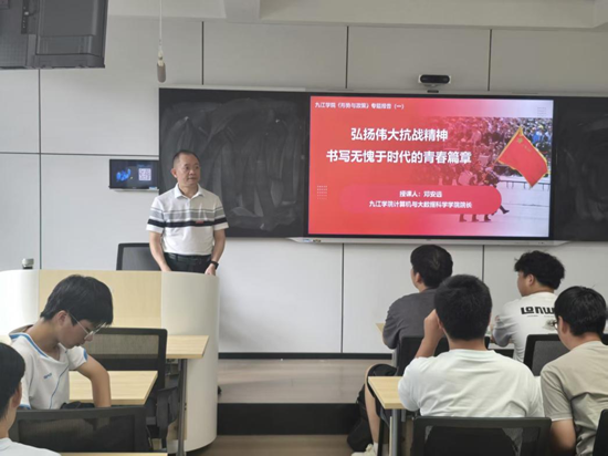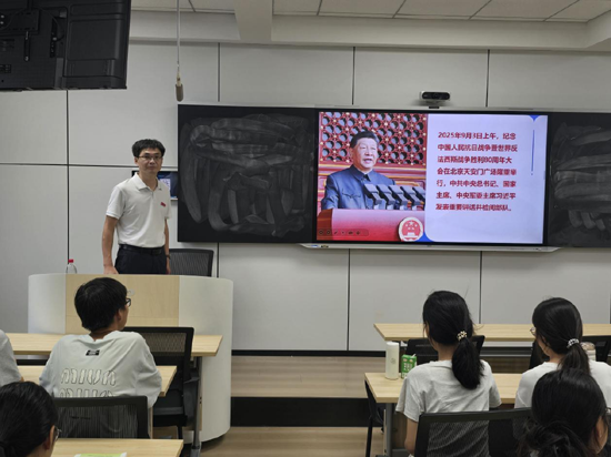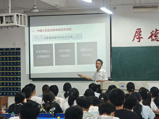 此次课程以纪念中国人民抗日战争暨世界反法西斯战争胜利80周年为背景,通过深入浅出的讲解和生动鲜活的案例,带领新生们回顾了那段波澜壮阔的历史,深刻理解了伟大抗战精神的丰富内涵和时代价值。课程伊始,学院领导强调2025年的特殊意义。80年前,中国人民历经艰苦斗争赢得反法西斯战争伟大胜利,为世界和平发展立下不朽功勋。如今大家站在新历史起点,更应铭记历史、珍惜当下、开创未来。