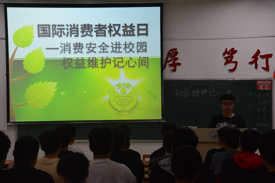 为提高大学生消费者权益维护意识,3月16日晚,计算机学院于文友楼各班教室开展“消费安全进校园,权益维护记心间”主题团日活动,此次活动由各班团支书主持,学院全体学生参加。