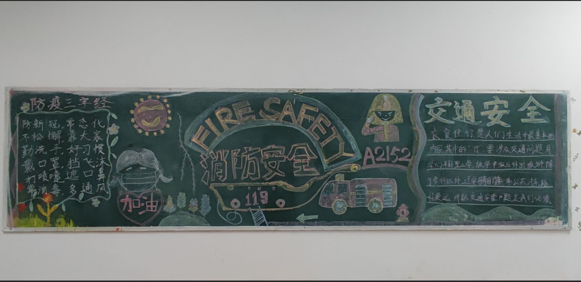 活动中,各班从不同的角度对平安江西的建设提出自己的见解,主要有以下三方面:一、“从网络安全方面来防范电信诈骗”;二、“从消防安全、交通安全及疫情防控进行安全教育”;三、“关注大学生心理健康,同时进行普法教育”。内容丰富的黑板报配上生动形象的插图,多方面的诠释了安全的重要性,也潜移默化的影响改变着同学们对于安全意识的培养。