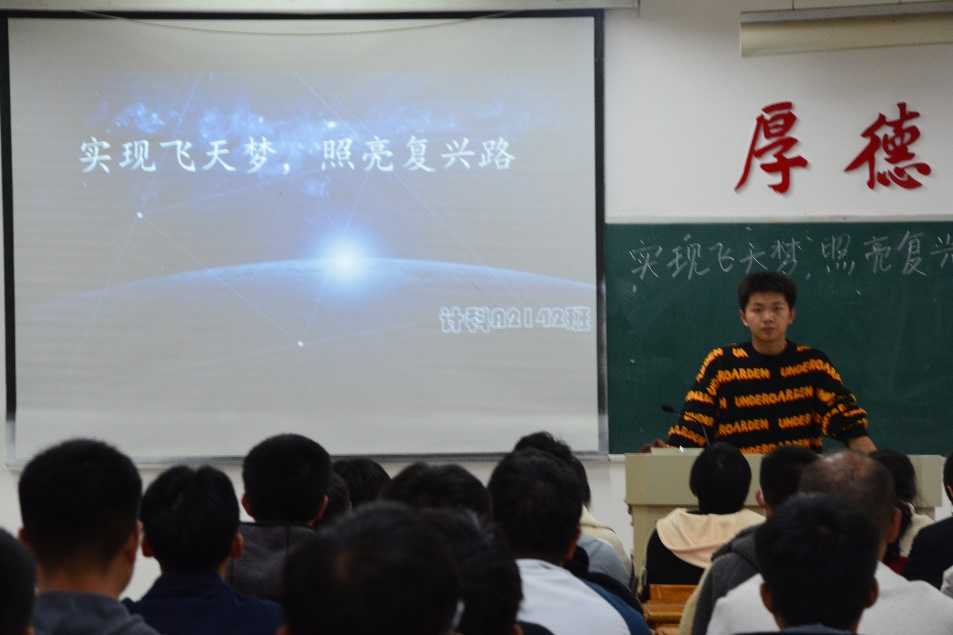 为了让同学们更好地了解中国航天历史以及中国航天经历的磨难和进步,11月24日晚,计算机学院于文友楼各班教室开展“实现飞天梦,照亮复兴路”主题团日活动,此次活动由各班团支书主持,大一全体学生参加。
