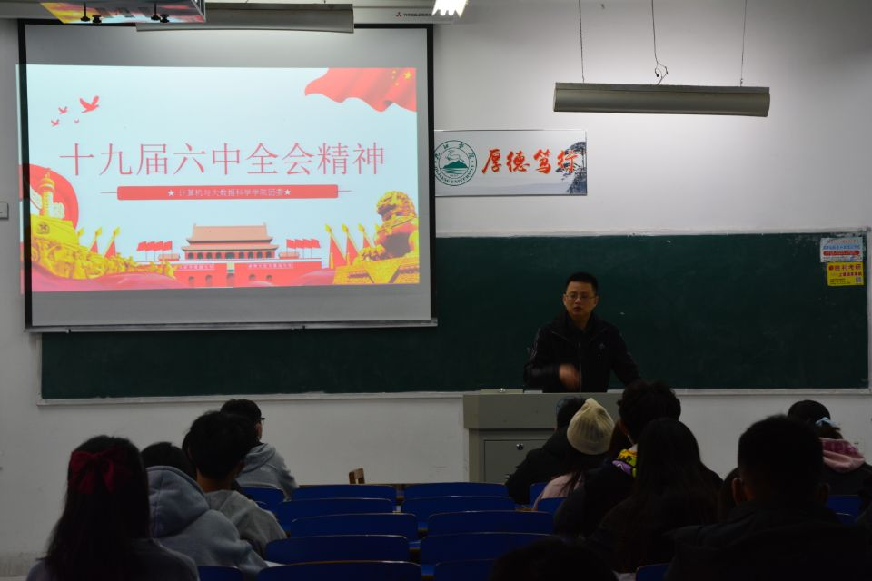 为了深入学习贯彻党的十九届六中全会精神,进一步了解党的百年征程重大成就和历史经验,11月10日,计算机学院在文友楼118举办“十九届六中全会精神”学习活动。计算机学院思政教育科副科长尹志刚以及全体团支书参加了活动。