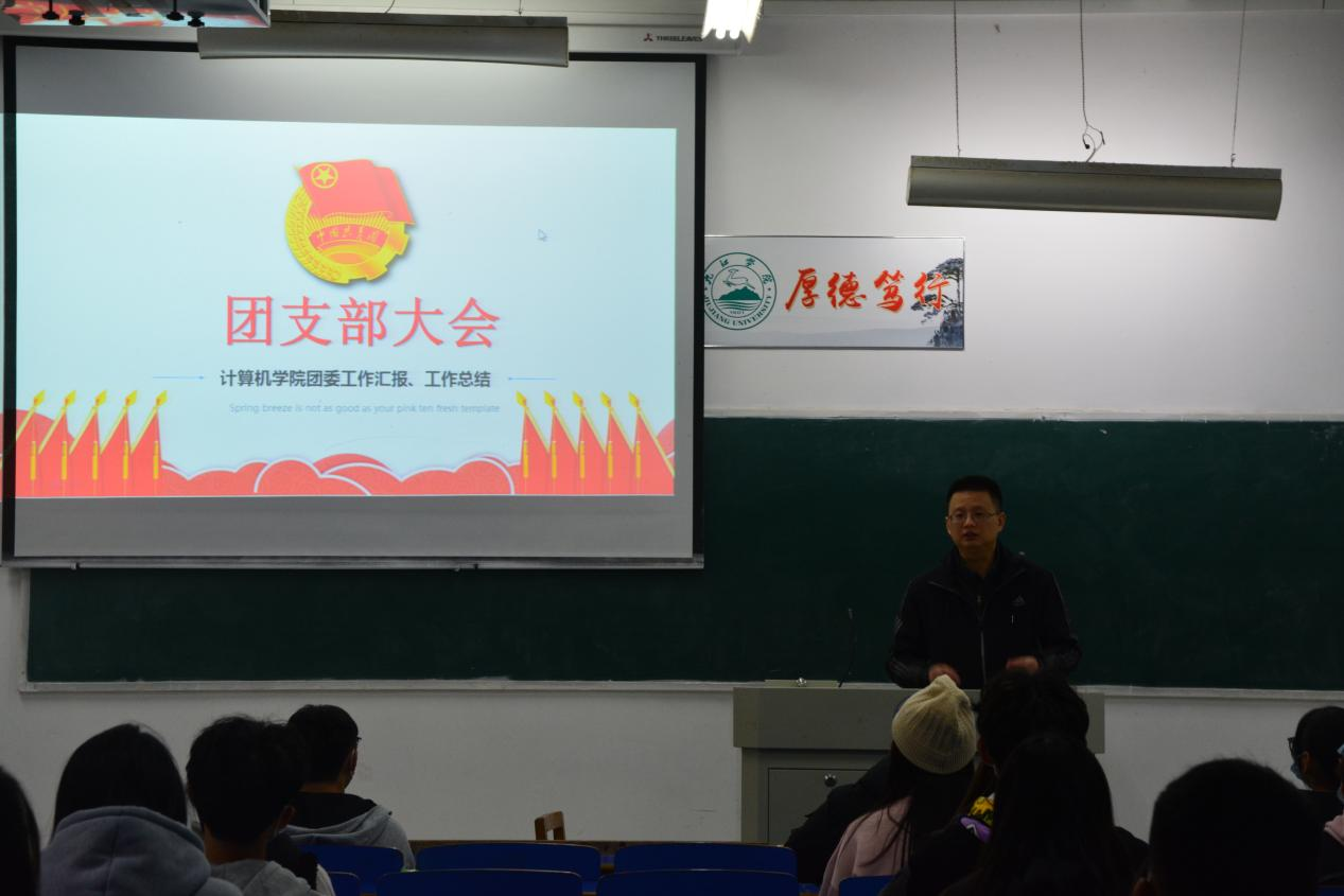 11月10日,计算机学院于文友楼118召开团支部大会。计算机学院思政教育科副科长尹志刚,学生团委副书记张钰晶、黄琼瑶,组织部干事和全体团支书参加会议。