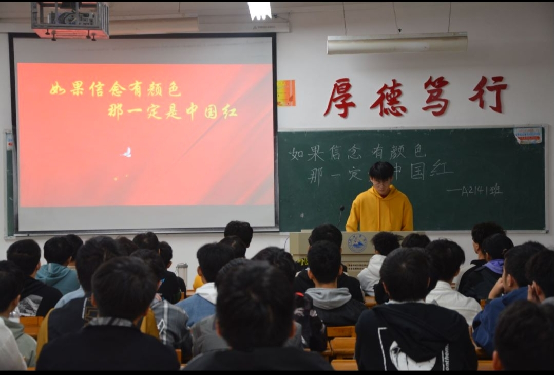 为激发同学们的爱国热情,增强同学们的爱国情怀,引导同学们认识国家的历史和现实,树立正确的理想信念,传承伟大的中华民族精神,10月20日,计算机学院于文友楼举办了“如果奇迹有颜色,那一定是中国红”主题团日活动,活动由各班团支书主持,2021级学生参加。