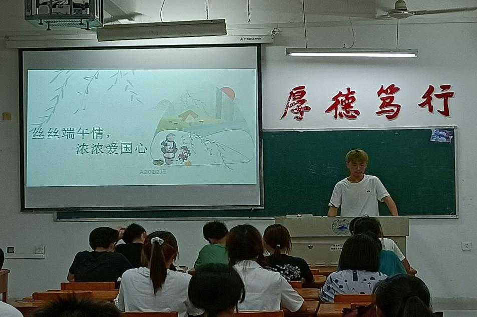 “节分端午自谁言,万古传闻为屈原”,当端午这个充满古色古香的节日来临之际,为了深入贯彻落实党的十九大精神,弘扬社会主义核心价值观和中华民族优秀传统文化,树立当代学生文化自信和文化自觉,69日晚,计算机学院各班在文友楼开展“丝丝端午情,浓浓爱国心”主题团日活动。活动由各班团支书主持,全体大一同学参加。