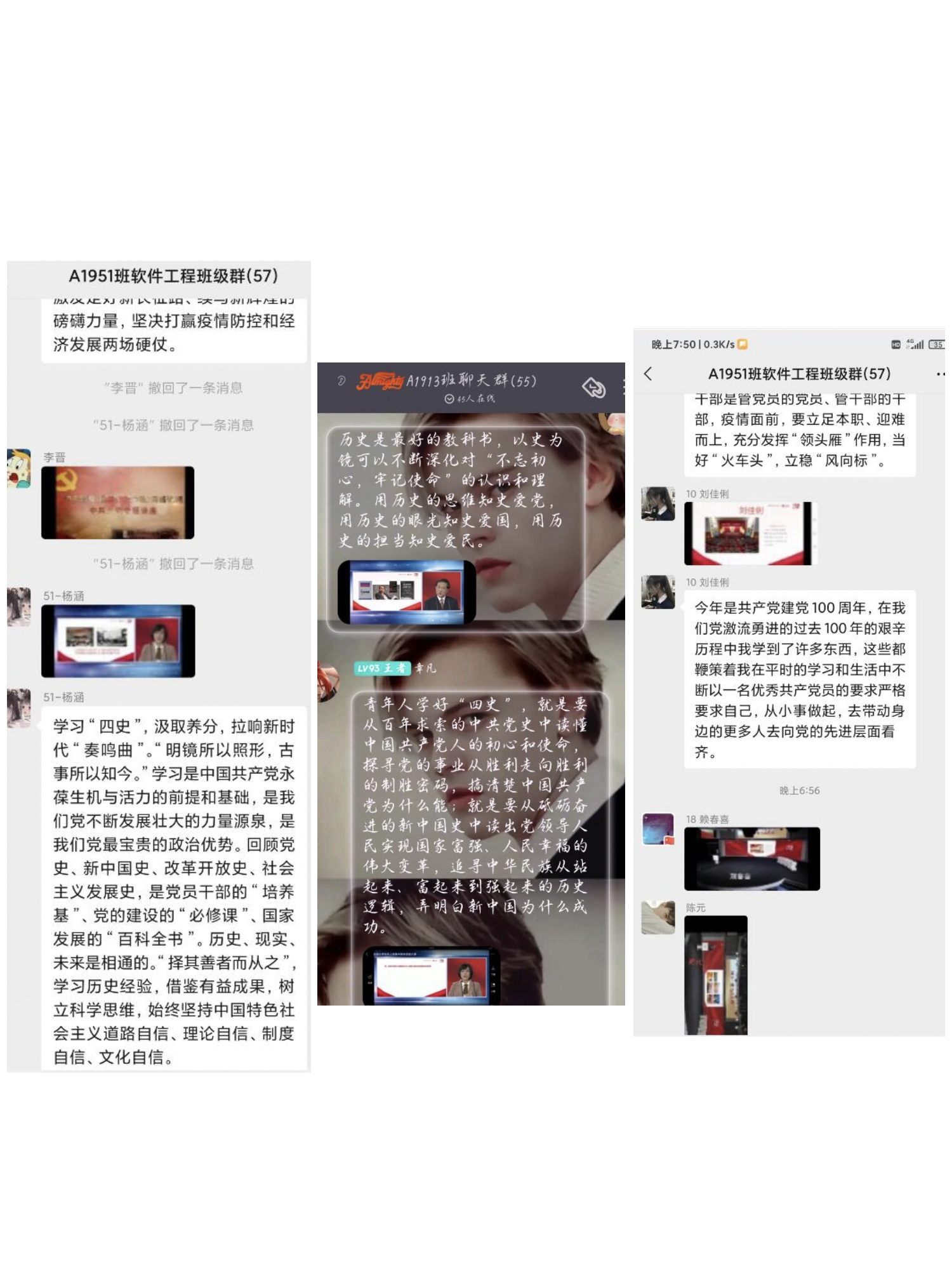 A2042班罗逢伟:在学习“四史”思政大课之后,我有深刻感悟。今年是我们党成立100周年,站在“两个一百年”的历史交汇点,全面建成小康社会伟大历史性成就激励人心,全面建设社会主义现代化国家新征程催人奋进。作为青年学生的我们要以深入学习党史,深入学“四史”,特别是学习习近平新时代中国特色社会主义思想,传承红色基因,赓续革命传统,坚定不移听党话、跟党走,主动承担起新时代赋予的历史使命。以史为鉴,可以知兴替。学习“四史”可以坚定我们的理想信念,激发斗争精神,肩负起责任和担当。进入新时代面对新挑战,我们在“四史”学习中反思自己,从而推动我们知史爱党,知史爱国,通过回顾革命先辈的伟大事迹,从而反思自己所应肩负起的责任和使命,将个人才华和中华民族伟大复兴的历史重任有机结合,肩负起历史的责任和担当。