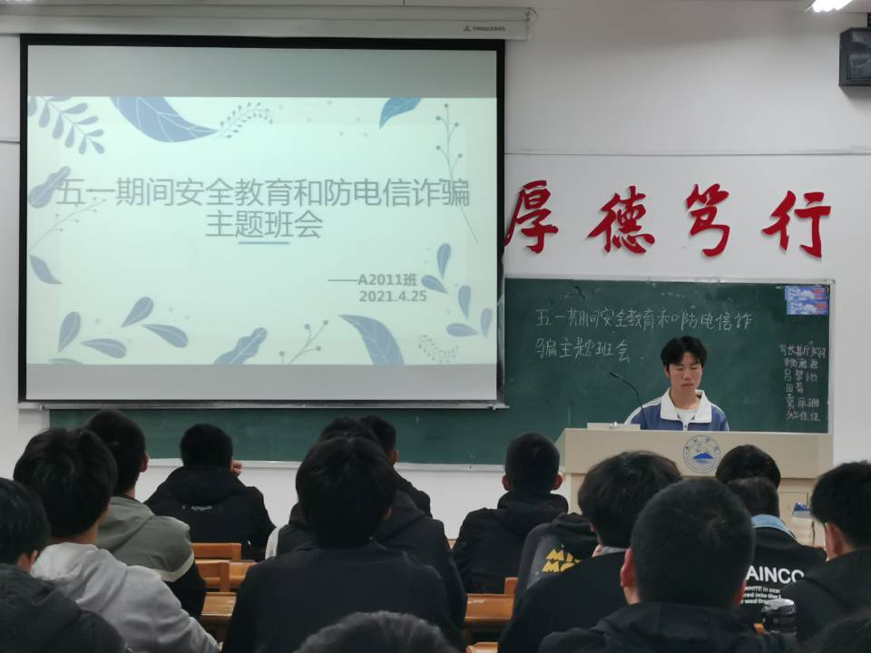 月落日升,星移斗转就在这新的一年的流淌中,不知不觉,我们迎来了五一黄金假期。由于疫情旧凶险,加上近期各种诈骗手段层出不穷,为了让同学们能度过一个安全愉快的假期,425日晚,计算机学院文友楼各班开展“五一假期安全教育”及“防电信网络诈骗”主题班会。活动由各班班主任主持,全体学生参加。