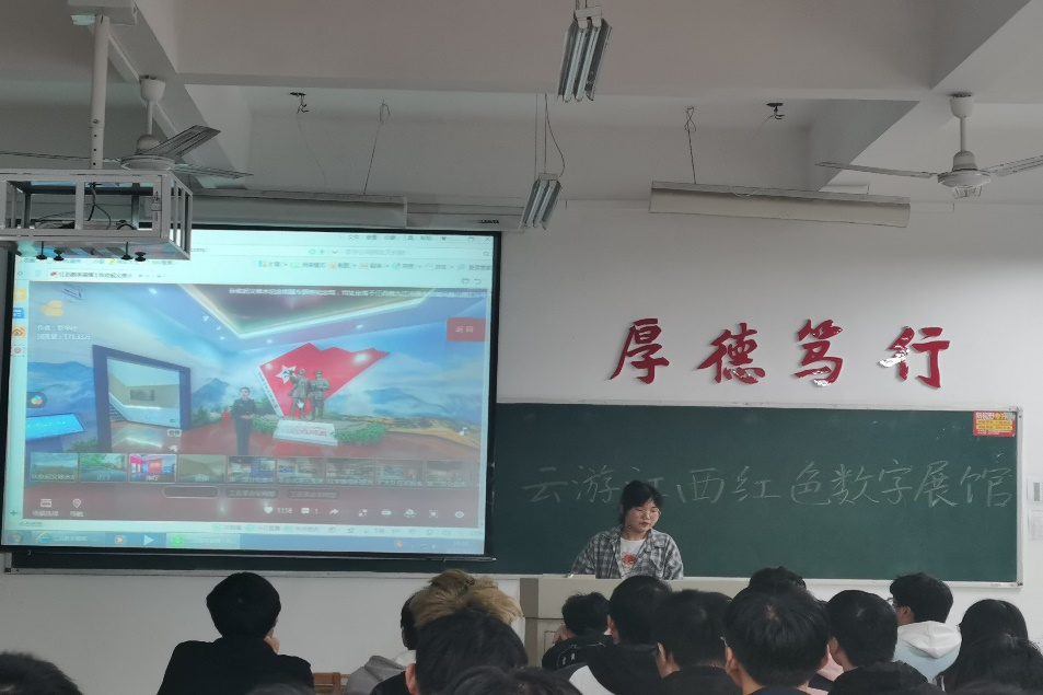 活动中,张钰晶为同学们展示了江西省爱国主义教育基地数字展馆“云上游”,这里有各个城市的纪念馆和陈列馆,我们可以从中参观展馆,还可以阅读红色资讯、红色读本、红色影音等内容。随后,张钰晶带领大家观看《跨越时空的回信》这档节目,其中何功伟烈士写给父亲的诀别信让我们感受到了信念如炬、九死不悔的豪情,也感受到了其子何继伟今生对未能与父亲谋面的遗憾以及对其父亲深深的怀念之情。最后,钟勋伟带领大家观看爱国影片《建军大业》,让我们深深感受到老一辈人的呕心沥血,更感觉到了自己肩负的使命感和责任感。