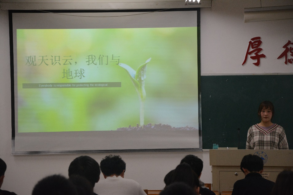 活动中,团支书带领同学们通过阅读PPT,观看视频等方式了解了气象有关的知识。随后团支书认真地给同学们讲解了人与地球的关系,以及人类活动对于自然的影响。随后同学们积极分享自己所了解到的气象知识,同时面对地球现存的环境问题进行了探讨。