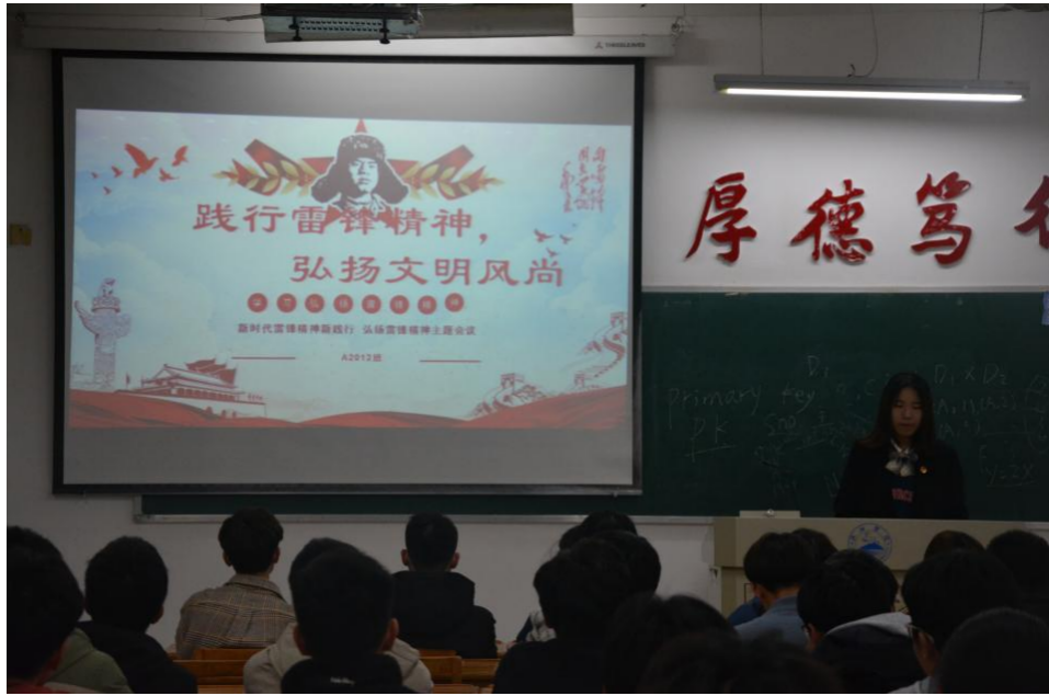 学习雷锋好榜样,忠于革命忠于党3月24日晚,计算机学院在文友楼各班开展“践行雷锋精神,弘扬文明风尚主题团日活动。活动由各班团支书主持,全体大一同学参加。