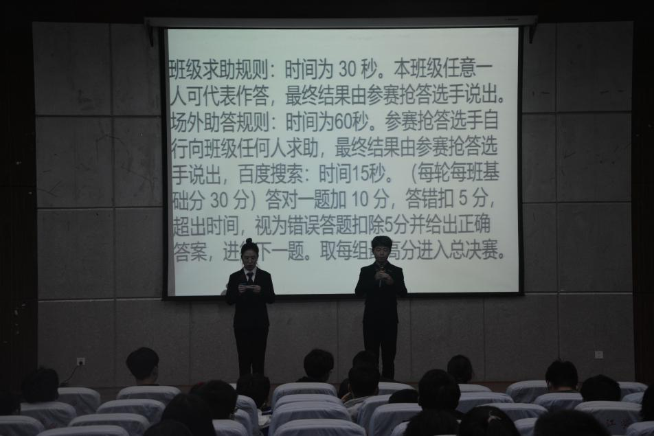 为帮助学生群体树立维权意识,深入学风建设3月16晚,计算机学院在文友楼报告厅举维权知识竞赛此次竞赛由权益部与学生会办公室主办,2017级学生干部严志铭、姜倩倩,学生团委副书记黄琼瑶和主席团执行主席熊宇及大一同学参加此次活动