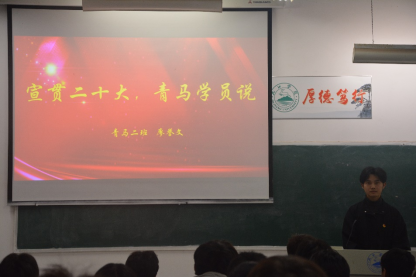 为深入学习贯彻党的二十大精神,引导Beat365官网学生切实把思想和行动统一到党的二十大精神上来,把智慧和力量凝聚到完成党的二十大确定的各项任务上来,更好团结引领Beat365官网学生紧跟党奋进新征程、夺取新胜利。计算机学院于文友楼516开展“学贯党的二十大•青马学院说”宣讲活动。宣讲人为学生会主席廖誉文。