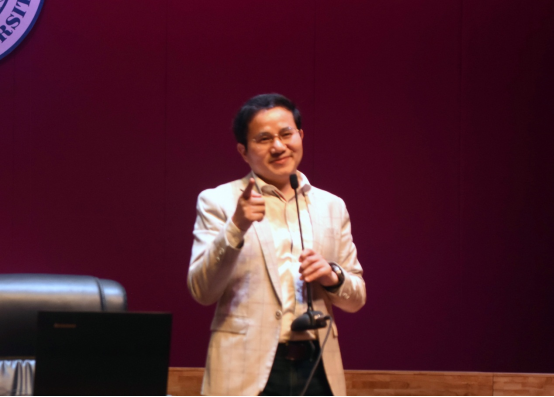 舒曼教授还带领听众做了一个心理游戏。本次心理健康教育专题讲座在活跃而轻松的氛围中结束。