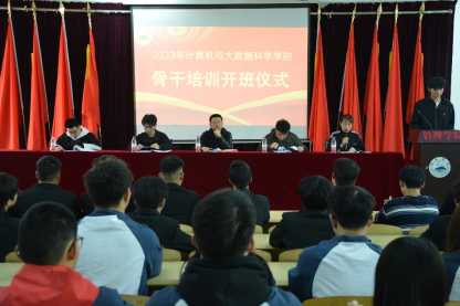 4月8日下午,计算机学院2022级大学生骨干培训班开班仪式在文理实验楼报告厅如期举行。此次开班仪式出席人员有:计算机学院思政科副科长尹志刚,21届学生团委副书记左建林、孙文芳,学生会执行主席廖誉文、汪浩民,21届团委学生会干部、2023届骨干班全体成员,活动由团委办公室主任李思鸣主持。