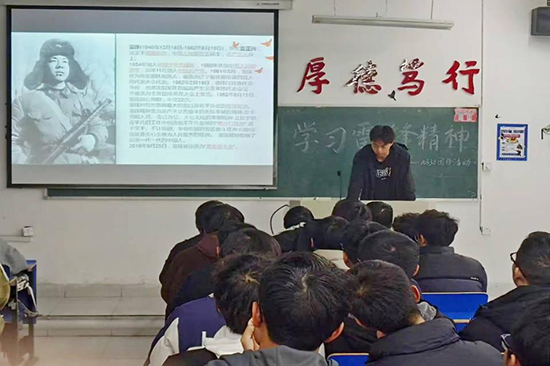 为大力弘扬雷锋奉献精神,广泛传播志愿服务理念,3月20日晚,计算机学院在文友楼开展“弘扬雷锋精神”主题宣讲活动。各班级纷纷响应学院号召,举办了形式多样的雷锋精神学习活动,如分享志愿精神故事、观看志愿精神影片等;经过这一系列活动的学习和体验,同学们深刻体会到雷锋精神的内涵,感受到雷锋精神的光芒,领悟到雷锋精神对社会发展的重要作用。相信同学们能够在雷锋精神的激励下,不断提升自身思想道德修养,让雷锋精神永驻学子心中。