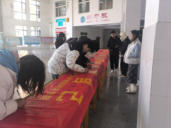 为积极响应国家关于加强学术诚信、促进教育公平公正的号召,12月16日,计算机学院于文友楼大厅举办了“竞知向学行校训,诚信考试靠自己”主题签名活动。