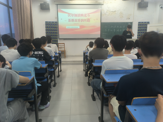 活动伊始,团支书以PPT的形式向同学们讲述了“伏尔加河”象征俄罗斯文化,“北斗”代表中国科技力量,二者交织体现中俄及丝路沿线国家的合作成果。“茶墨双香”则以中国茶文化与书画艺术为载体,展现中华文明的深厚底蕴。而后,同学们围绕“数字技术如何助力‘一带一路’绿色发展”展开讨论,提出多种创新方案。这不仅让同学们深刻理解“一带一路”倡议的内涵,更激发了他们以专业能力服务国家战略的责任感。同时,引导同学们以专业为纽带,在文化互鉴中增强文化自信,在科技合作中践行青年担当。