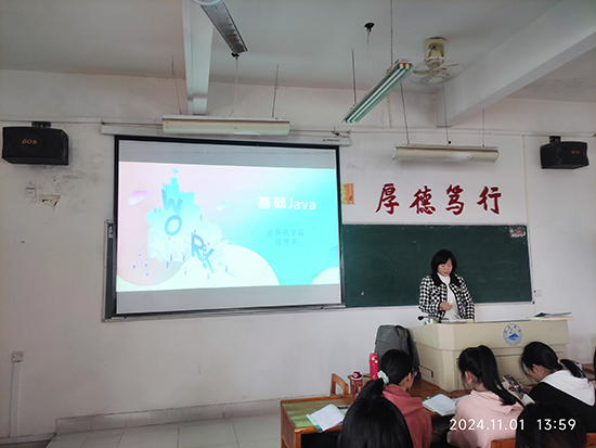 2024年11月1日下午,Beat365唯一官方网站软件工程教研室的程建华老师,在计科A2353班的《基础Java》课堂上,呈现了一场精彩纷呈的教学示范公开课。此次公开课不仅吸引了学院内众多教师的关注,学院院长邓安远、学院教学督导以及其他教研室的老师也纷纷前来观摩学习。